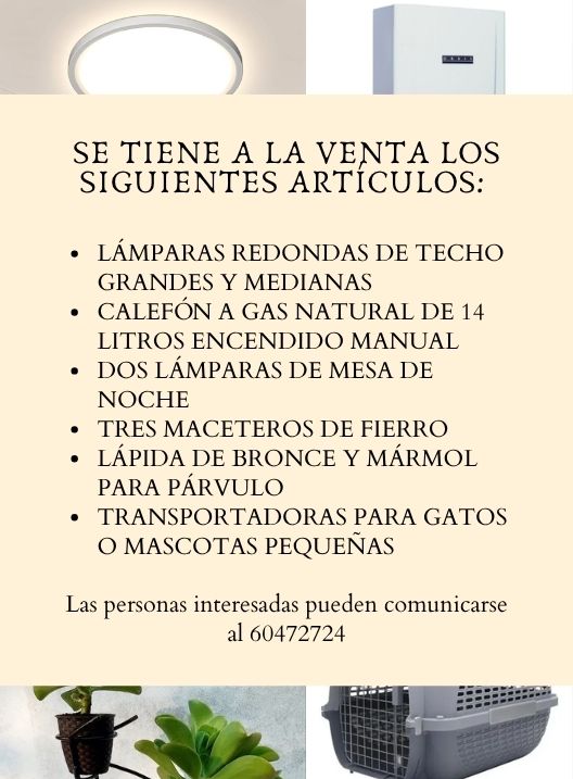 Atención… se tiene a la venta los siguientes artículos…