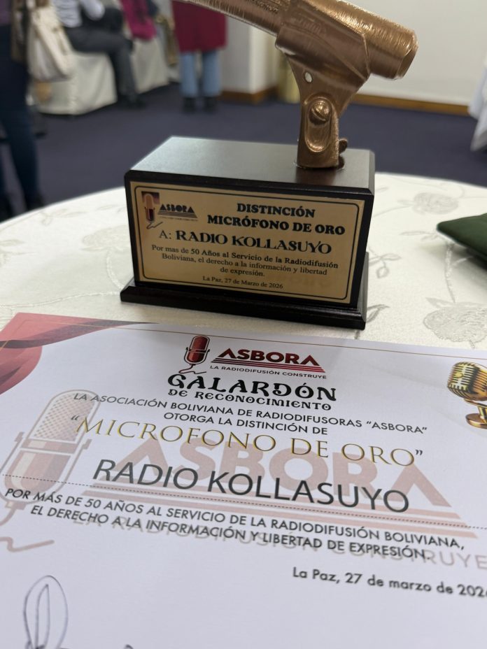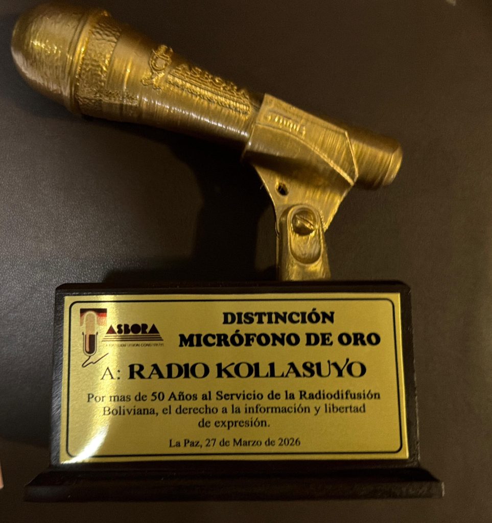 En este marco, Radio Kollasuyo fue galardonada con el “Micrófono de Oro”, junto a otras ocho emisoras a nivel nacional, en reconocimiento a sus 59 años de trabajo ininterrumpido al servicio de su pueblo, con un compromiso firme hacia los sectores más humildes y necesitados, pilares fundamentales de su labor diaria.
